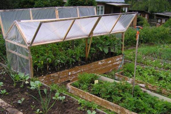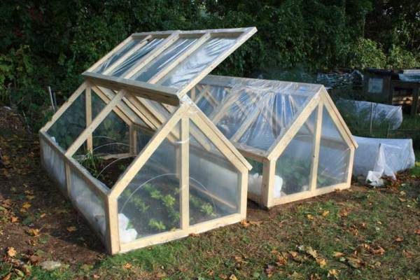 Film veya polikarbonat levhalarla kaplı torna çerçevelerinin konstrüksiyonları. Çerçeve tabanı, kutu veya ev şeklinde monte edilir. bir çubuktan veya panolardan.